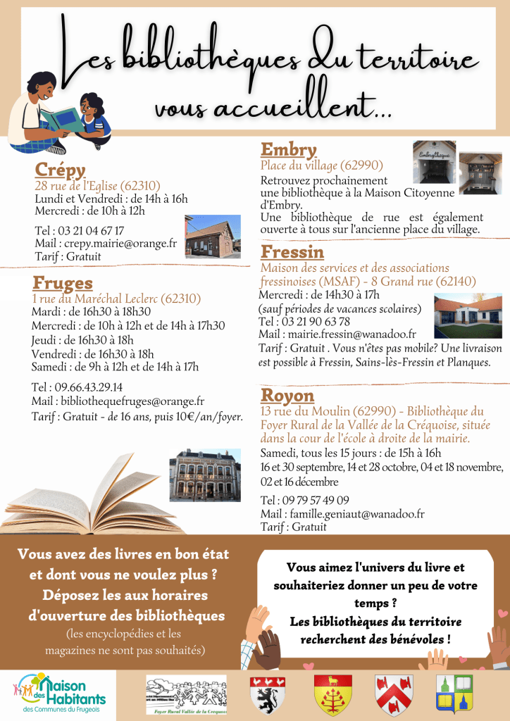 Les bibliothèques du territoire vous accueillent Publié parMaison des Habitants des Communes du Frugeois20 avril 202321 septembre 2023Publié dansNon classé Similaire